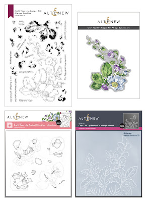 Hello Friends. I'm presenting this gorgeous Craft Your Life Project Kit for Altenew (affiliate link). This is the Always Sunshine Kit. It has stamps, stencils, embossing folder and a die in the set! I am participating in a wonderful Hop featuring some very talented creators. The blog starts here. The overview for the release on my channel is here.