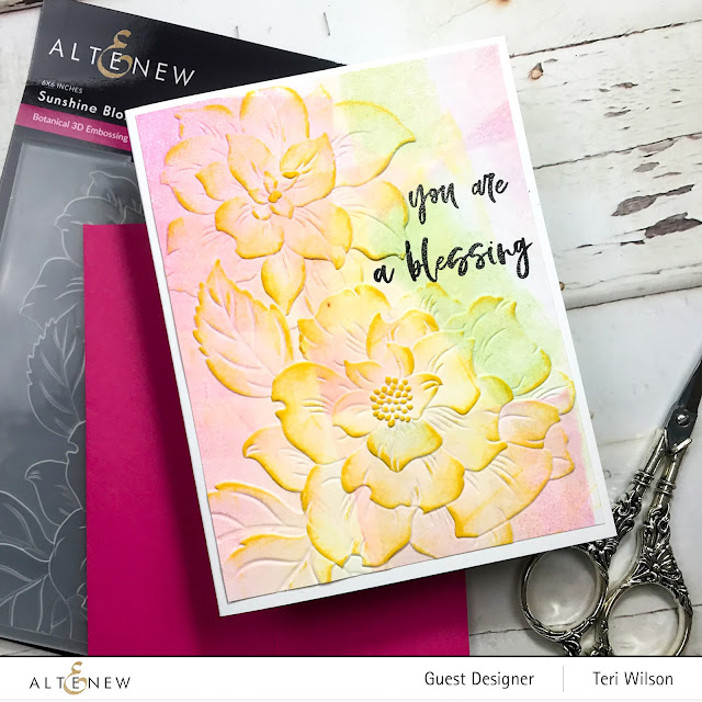 Hello friends. I am back to present the details for my Gelli plate backgrounds I created with the new Sunshine Blossoms Embossing Folder from Altenew. This release is part of the July 2022 Summer Love Release Blog Hop.Check out the complete Embossing Folder Release on my YouTube Channel HERE. The Blog Hop begins HERE