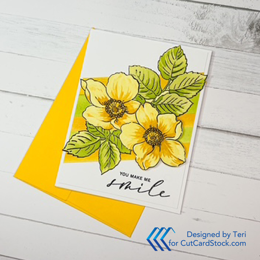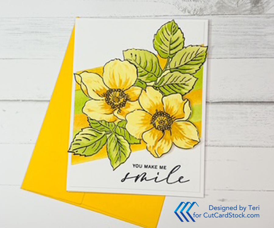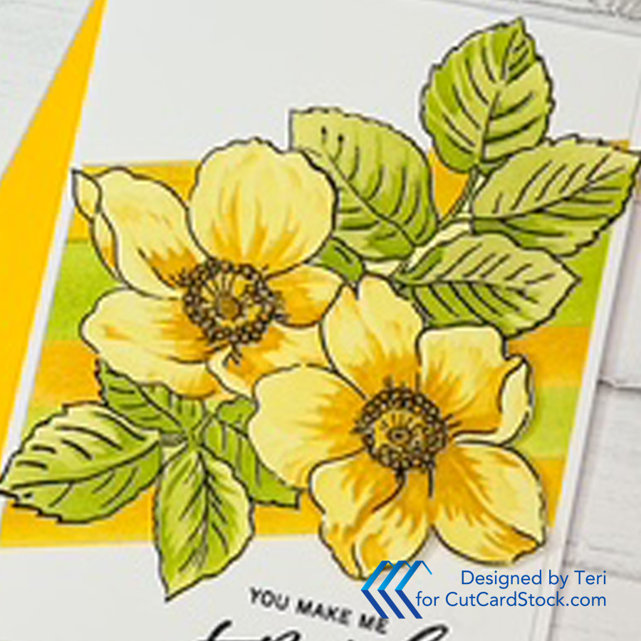 Hello friends. It is Teri with TerisMailbox posting for CutCardStock. Check out this colorful card that started with a colored cardstock. It is amazing the depth of colors you can achieve when you begin with a light-colored cardstock base!